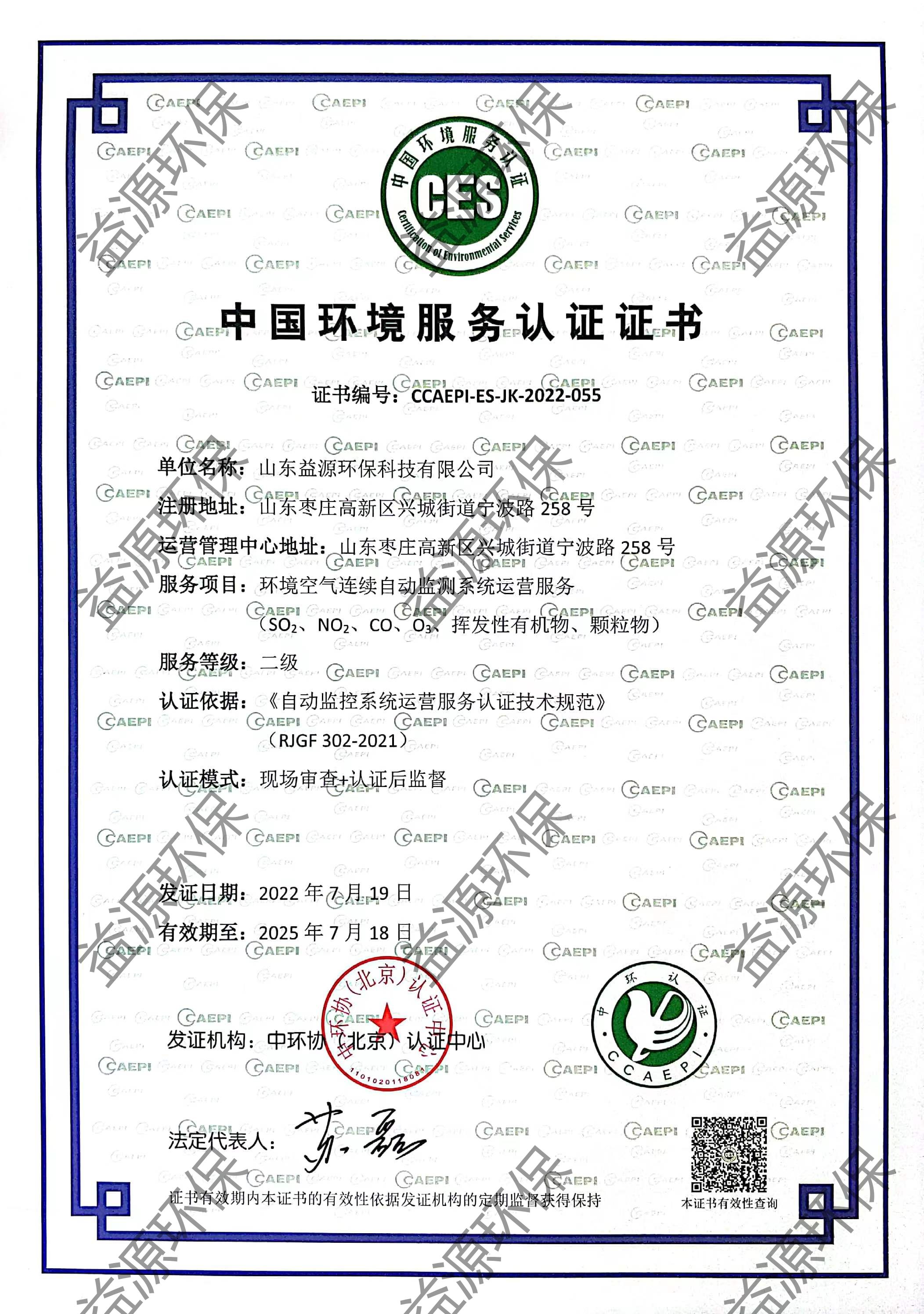 首頁 關于我們 資質證書環(huán)境空氣連續(xù)在線自動監(jiān)測系統(tǒng)運營服務認證