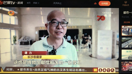 比如一,兩位老友分別專程前來“湖南省地質(zhì)博物館”,一位是湖南衛(wèi)視的領(lǐng)導(dǎo),一位是廣東來的大咖,他們之前并不知道對方會來,卻演戲似的,穿得一紅一綠,來觀賞這綠水晶之上的紅螢石。